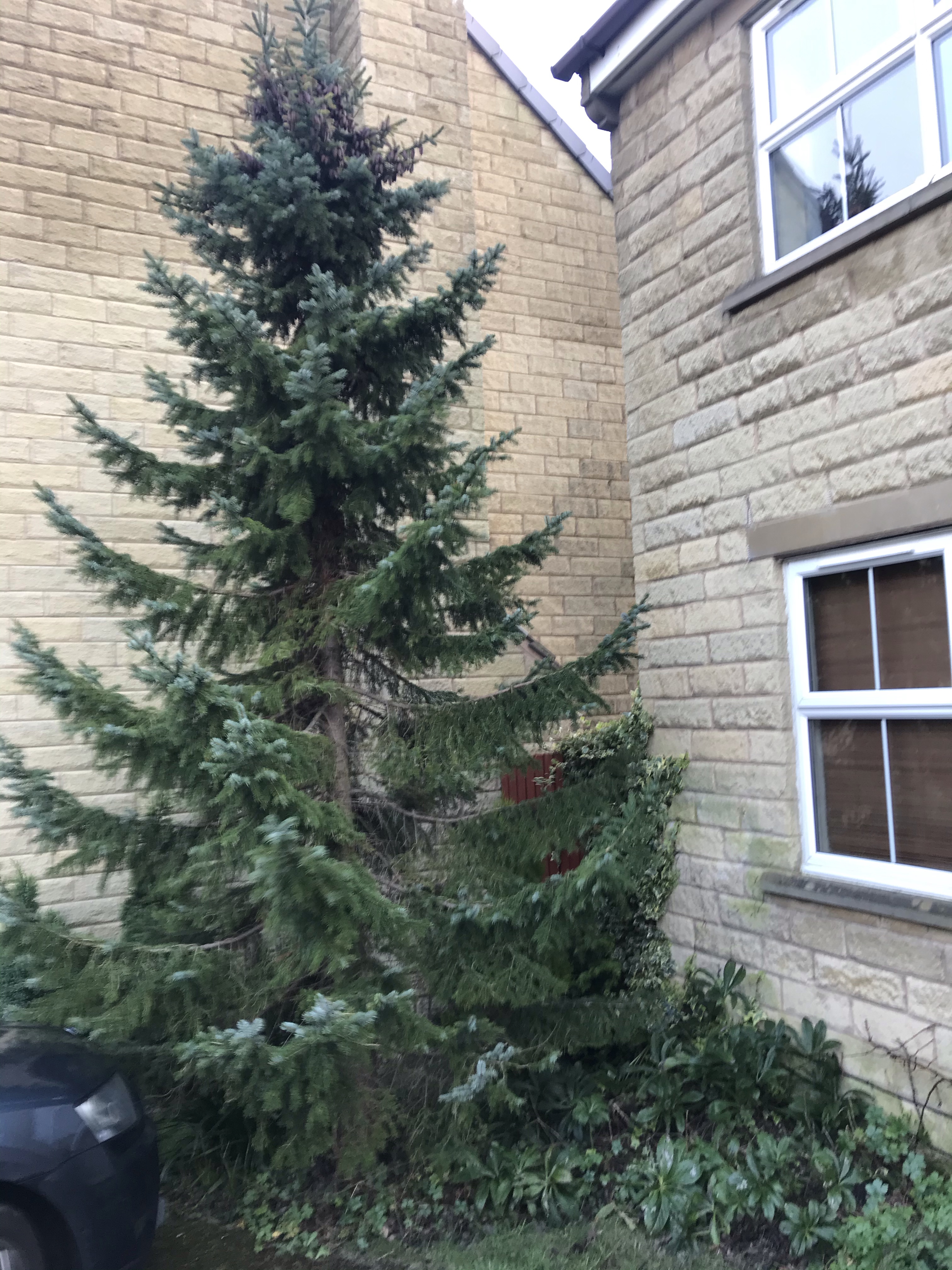 This oversized tree had been adorned its lights – goodness, I hear you cry , how many ladders and men ( not to mention hard hats, safety clips etc etc remembering my ruminations on Health and Safety….!!) do you need for that job? Do not fear – an apple picker with the DB at the end of it is all that is required ( oh and of course a sixty something year old rambler , walking round and round with the lights as and when instructed to!)! An apple picker you say ….