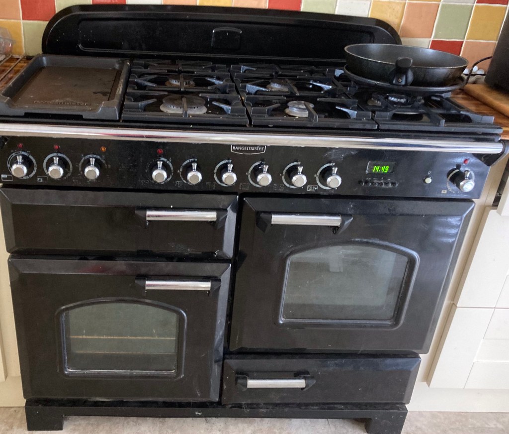So after much deliberation , we have a new piece of cooking equipment in the kitchen with all the trepidation that brings ….and it took me right back to when we had our kitchen re- done about ten years ago. In my previous life I had always cooked on Agas and whilst I would have loved an Aga here , we opted for the next best thing ( well in looks anyway) a Rangemaster stove ( very posh with two ovens and a grill, a wok ring, four gas rings and two electric rings which serve as a brilliant pancake cooker!