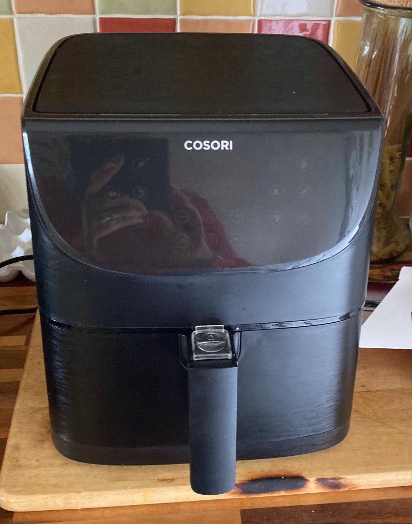 Now I know what you’re wondering ….what happened ten days ago to change my mind ? Well it was the purchase of an Air fryer ….let me explain. We need to go back just a little bit – most of you know of the DB ( Dearly Beloved, the present Mr Harding , my better half – or if the winds blowing in the wrong direction, Victor Meldrew!) – well, he is a Yorkshireman which means the phrase “ How much?” comes to him as easily as breathing in and out! So when the crippling rises in electricity and gas costs were mooted, he tucked himself away in his study, to calculate any money saving methods he could muster . Research showed that an air frier used 80% less energy to provide perfectly cooked food ! Well you can’t argue with that …..particularly when I knew he had read re-read and then read again every available piece of information on air fryers he could. You see Dear Reader this is where he and I differ …. I hear they use 80% less energy and decide – right we’ll have one, that one looks nice …… order ….next day delivery …and off we go – decision made in 5 minutes !