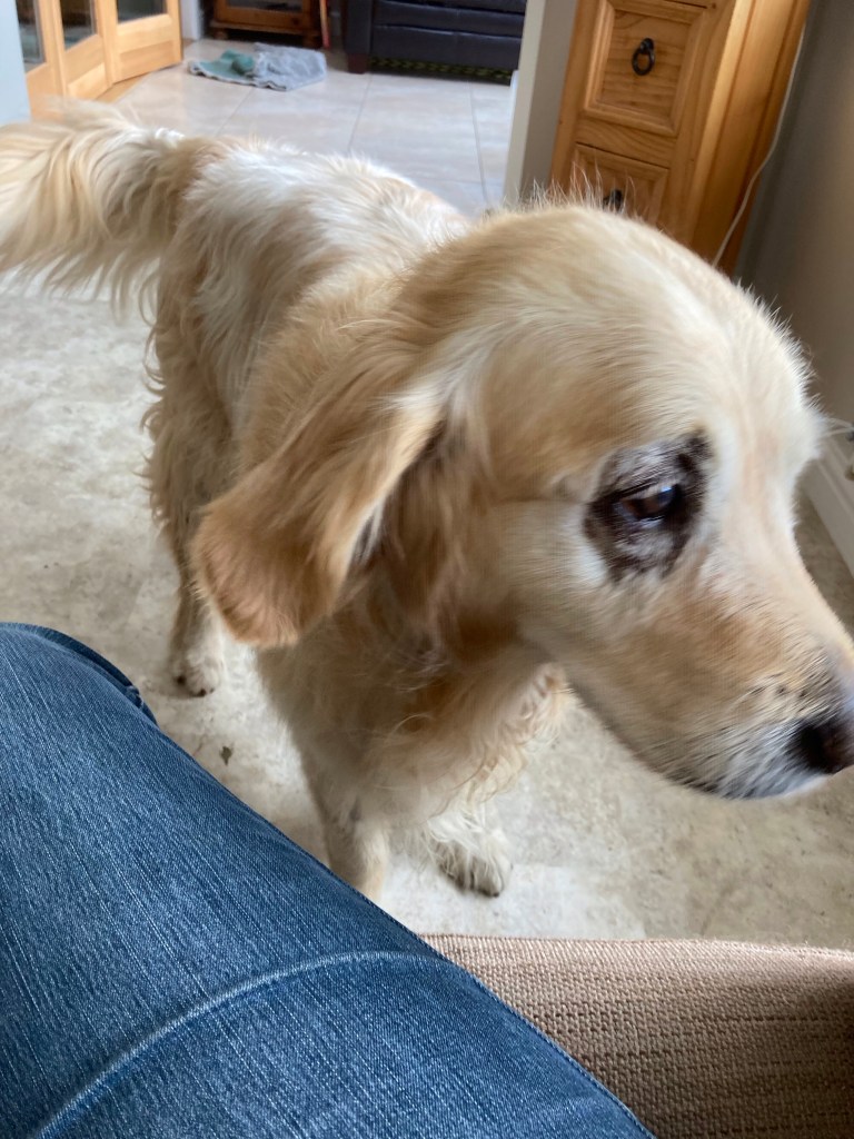 I’m then called in ….Mrs Blubbering wreck in the corner …..vaccination administered and off we go…..needless to say I felt completely wrecked and traumatised by all this . So when I went the next time I spoke to the receptionist about it . I’m pleased to report the Labrador type dog had improved though was still on medication. As for the Go,den Retriever- 14 is a very good age – he had started to have fits though and apparently had had a really bad fit which made the owners mind up to have him put to sleep rather than go on suffering……that made things easier for me because I knew he’d been truly loved 💙