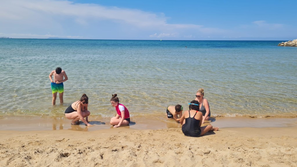 We had a chilled day on Tuesday , going out to dinner in the evening to celebrate our granddaughter, Eleanor’s, 12 th birthday ( which was on the following day) and then Surprise 2 happened on her actual birthday! We had decided to go to the beach for the day – it was the easiest way of enacting the second surprise. However, things never go smoothly do they – the best made plans of mice and men and all ……All of us ( with the expectation of course of the DB) were awaiting the arrival of his daughter, Emma, and her two children. I knew where she was flying to, and that she was catching a train from the airport to a nearby town. However, she had a problem with her mobile phone and lines of communication were down 🙈🙈🙈- can you believe it!!! I could check her flight had landed and hazard a guess at the time of train she may get, but we were trying to keep this a secret so….. As it happened it all came to a point,but worked out perfectly. The DB disappeared with Ross to order a pizza for lunch – so I shot off the beach and drove to collect Emma and Co.. I was sure the DB would guess what I was doing …but no…..he knew I was up to something but had no idea what ! So after eating the pizza ( and I think drinking a beer..) he was snoozing on the shoreline when suddenly Emma and her children jumped in front of him shouting “ SURPRISE”. He was taken completely by surprise…….but I could then completely relax ! There were further surprises to come but nothing on that scale.
