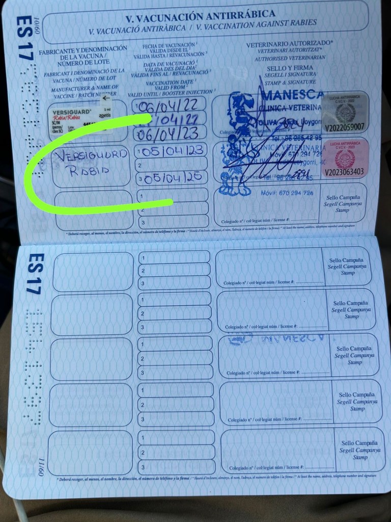 Needless to say , on our arrival at our destination we consulted the vet who rectified the situation , though I pity the poor person who failed to complete the entry correctly !!!