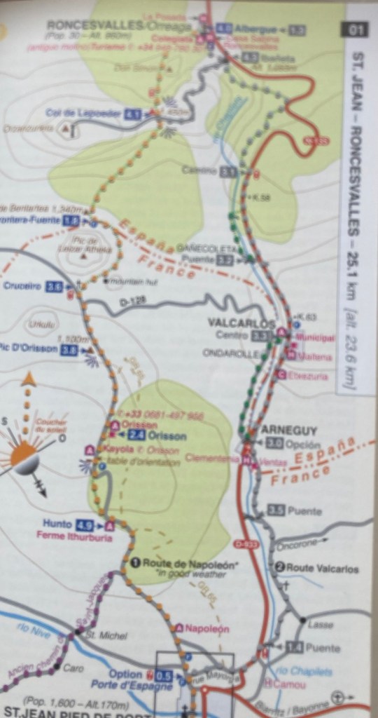 We decided to go on a walking tour of Saint Jean Pied de Port …fortunately by accident we found the Pilgrim’s Office where we were given a map of our route tomorrow…a real “ up and over” 🤪🤪🤪 but we learnt there is one part of the route that is extremely dangerous and to be avoided FULL STOP. Do not fret Dear Reader…we know that when we reach a pole ( and we know where that pole is 😉😉) , we take a right turn rather than going straight on !!! Thank goodness that in our quest to research the fermented grape juice of the region, we fell upon the Pilgrim Office!
