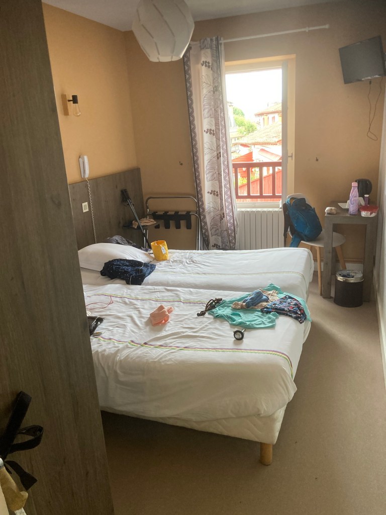 Trip advisor reviews suggest this hotel may be likened to Fawlty Towers, with its very own French Basil Fawlty . No sign of him on our arrival …nor anyone who could assist in carrying our bags up two flights of fairly doddery stairs . No matter, we were not down hearted ( and dare I say slightly relieved not to be met by a grumpy old man !)