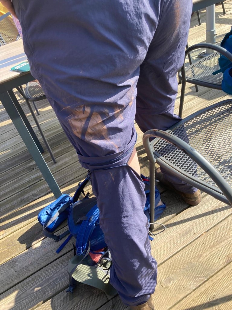 At this point, I ask you to please ignore the rather unflattering marks! I unzipped the left leg zip …all good … but to no avail! The lower leg was still attached !! How? The zip wasn’t broken … then I realised, the lower part remained attached to the upper part by a section of the fabric ! Faulty gear indeed … but after having these trousers for at least five years ( clearly never having attempted to make them into shorts!) .. there was no way you could return them and get a refund 🙄🙄🙄