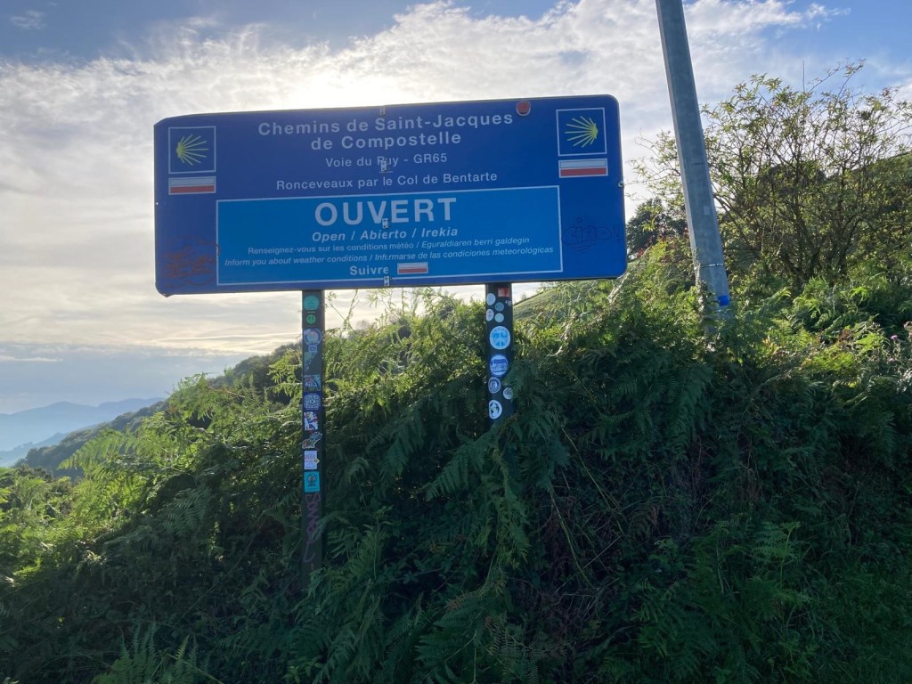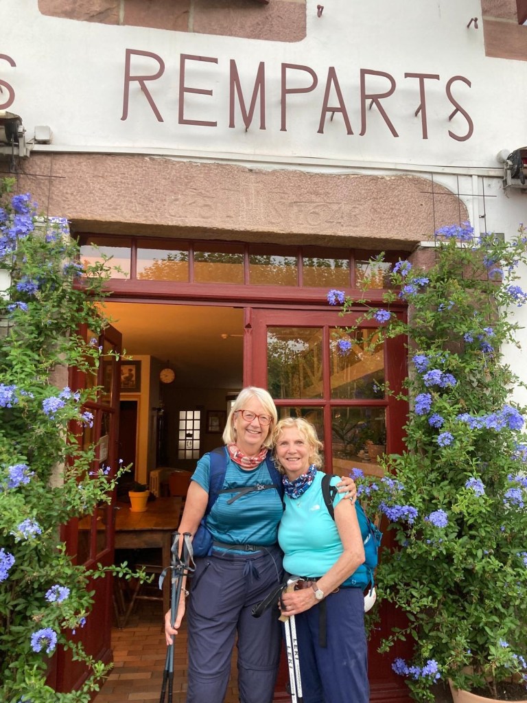 We met a lot of very interesting people on our way Americans, Australians, English and Canadian … one of whom we named the laughing policewoman… no joke, we met her first at the Auberge Orisson , 8 km out of St Jean Pied de Port . No idea if she was an actual police woman but her laugh was constant and loud throughout our climb . Near one of the tops, a German gentleman stopped where we were sat but apologised to us saying the batteries in his hearing aids had run down so he couldn’t hear us well 😘😘 “ Lucky for you “ I thought “you won’t be able to hear this woman’s continual laugh transcending every valley !”