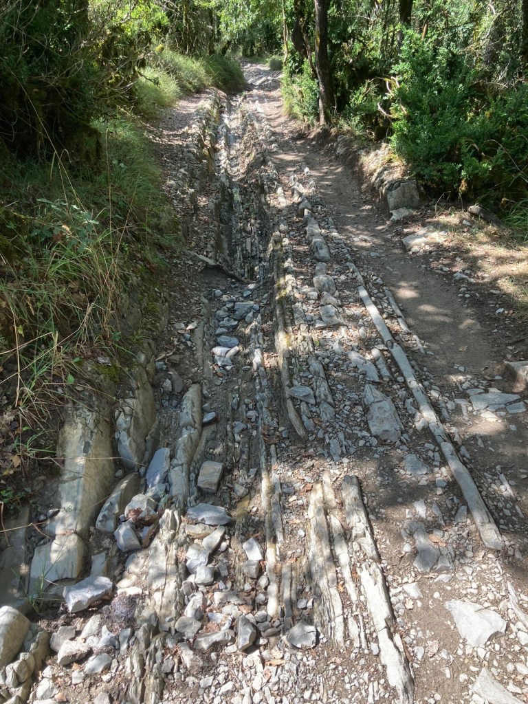 This brings me on to the dangers of the Camino . Now about two months before we started, a 45 year old French man died on day one …and we suspect he fell on the very steep track that we were warned against even attempting. If you remember, yesterday I told you about our trip to the Pilgrim Office ( in fact all for the benefit of you, Dear Reader , in search of wine to recommend!) – where the lady there told us we would reach a Pole, and there we must take a right and not follow the signed route . Well much to our amusement, once we reached the Pole , there were two Swedes 🤣🤣 , who guided us on the new path we had to follow !!