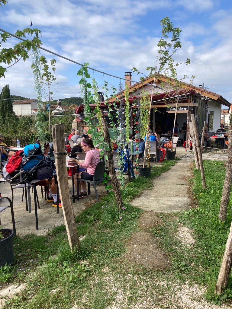 Although we had some hills to climb,it was a very pleasant walk through pine and eucalyptus forests and before we knew it , we had covered 3.5 miles without even blinking ! We had trained well for walks like today ….on reflection, obviously our training had helped with yesterday but realistically it would have been very hard to train enough to find yesterday ‘ a piece of cake’ . I think even the fittest person undertaking the Camino Frances would agree that yesterday was tough!