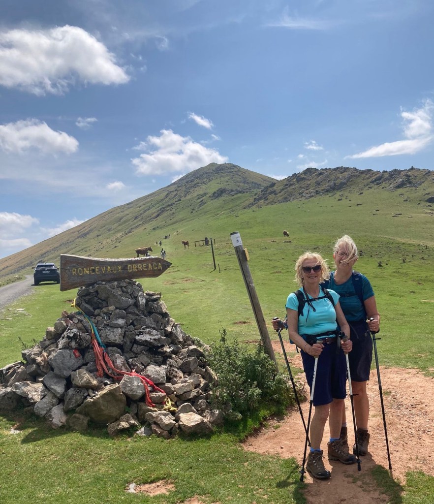 Now, you will know that I always try and adhere to the 7 P’s when preparing to do anything …what? You’ve forgotten them ..Okay just this once then ‘ Perfect Precise Planning Prevents Piss Poor Performance’ So as we were walking up and up yesterday, we came across a Canadian couple carrying a bum bag ( or for those of you in the USA, a fanny pack though I have no idea where that name came from 🙄🙄) and a litre water bottle . She was clearly struggling with the upward climb and wearing ordinary trainers ( I rely on Kathleen’s skills when it comes to footwear in these cases – and the shoes were totally inappropriate and unsupportive for the walk she was undertaking . This couple had no map or information booklet about the Camino, nor had they booked their first night in Roncesvalles …though had arranged for their luggage to be transported ahead to the Monastery where they hoped to stay the night 🙈🙈When asked by Kathleen why they hadn’t phoned ahead, it transpired they hadn’t brought a mobile phone with them ( they had just retired ,sold their business and home and were living a nomadic lifestyle ) but to be without a phone on a trip like the Camino is madness. We also suspect they hadn’t done much training and like many others thought this Camino was ‘dead easy’ Big mistake !!!
