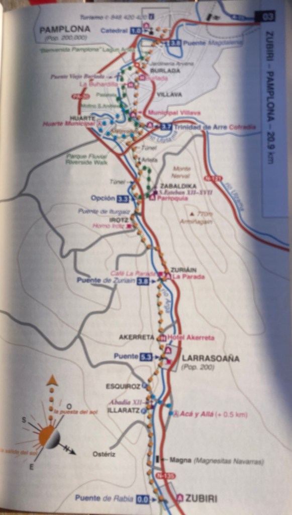 So to tomorrow – a walk of 20.9 km/13 miles to Pamplona, a beautiful city and the home of Ernest Hemingway and bull running ! What could possibly go wrong ??