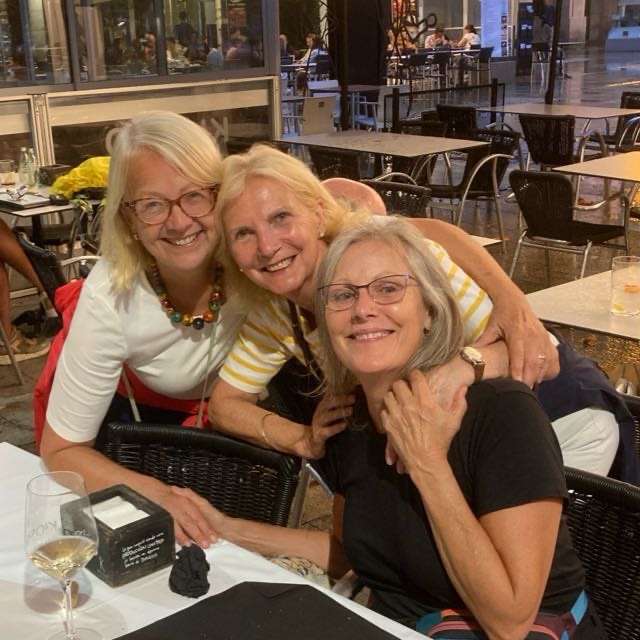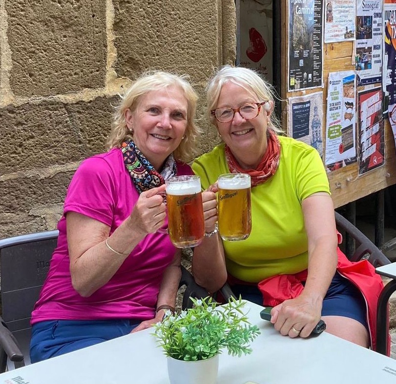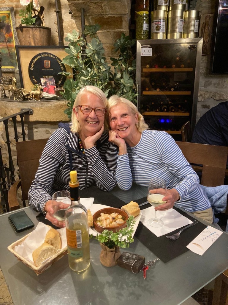 Whilst we were seated …testing a wine out for you …that is our purpose on this Camino , you understand ….we saw a girl we recognised, sitting on her own ( we knew from a previous conversation overheard that she was on her own having lost her husband four years ago ) So Cia came to join us….