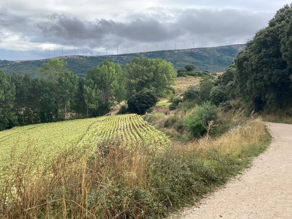 Today has been a truly lovely day for both of us . I think it’s fair to say, that after our descent into Zubiri on Sunday , we were slightly anxious about another descent marked with a ❗️ in our trusted guidebook! However we found both the ascent and descent of that enormous hill today, not too troubling …you’ll be pleased to hear .