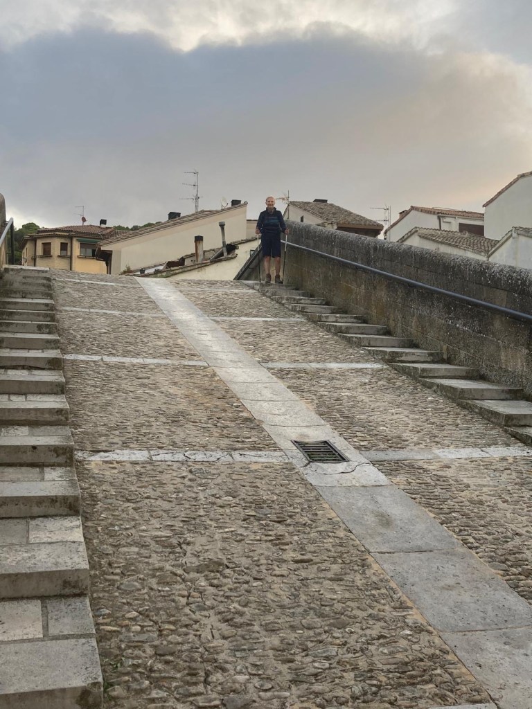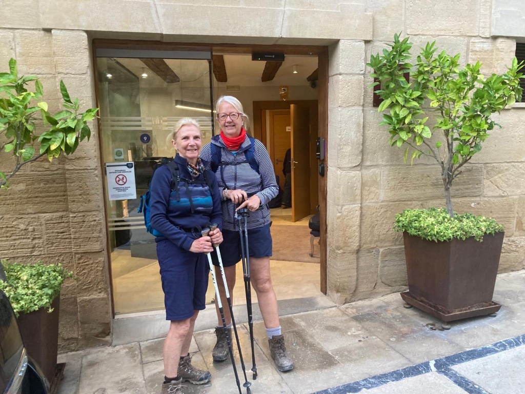 We are now on Day 6 and very conscious that we have to keep our wits about us ( seeing a fellow pilgrim fall had particularly brought this to the fore) …tiredness can certainly lead to a lapse in concentration and a fall . However, we are both amazed at how we are managing ( don’t worry…I just touched wood 😉) …our fellow Dublin pilgrim calls us ‘the Yorkshire Girls’ and today a Spanish couple, who we’ve chatted to frequently, told us they thought we were about fifty seven !!! We’ll take that thank you …and no comments please from certain quarters that they should have gone to Specsavers!!!!