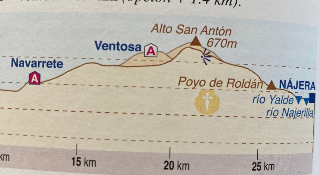 Then it’s back to the hotel for an early night ( and a speedy prayer that the church bells don’t chime throughout the night 🙏🙏Tomorrow we walk 10.9 miles to Najera and it seems we start off with a very cheeky little hill!