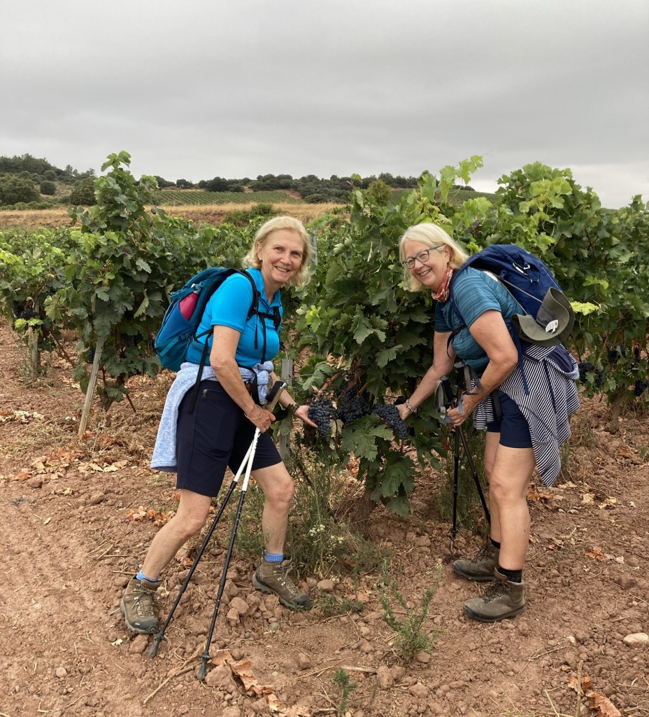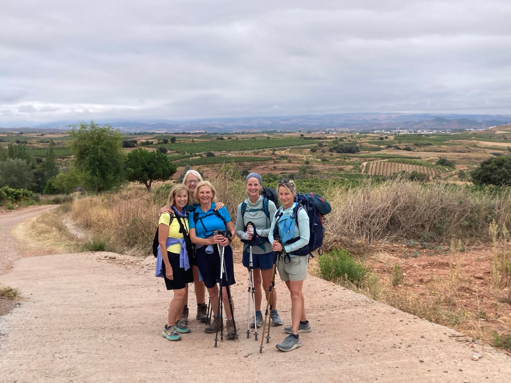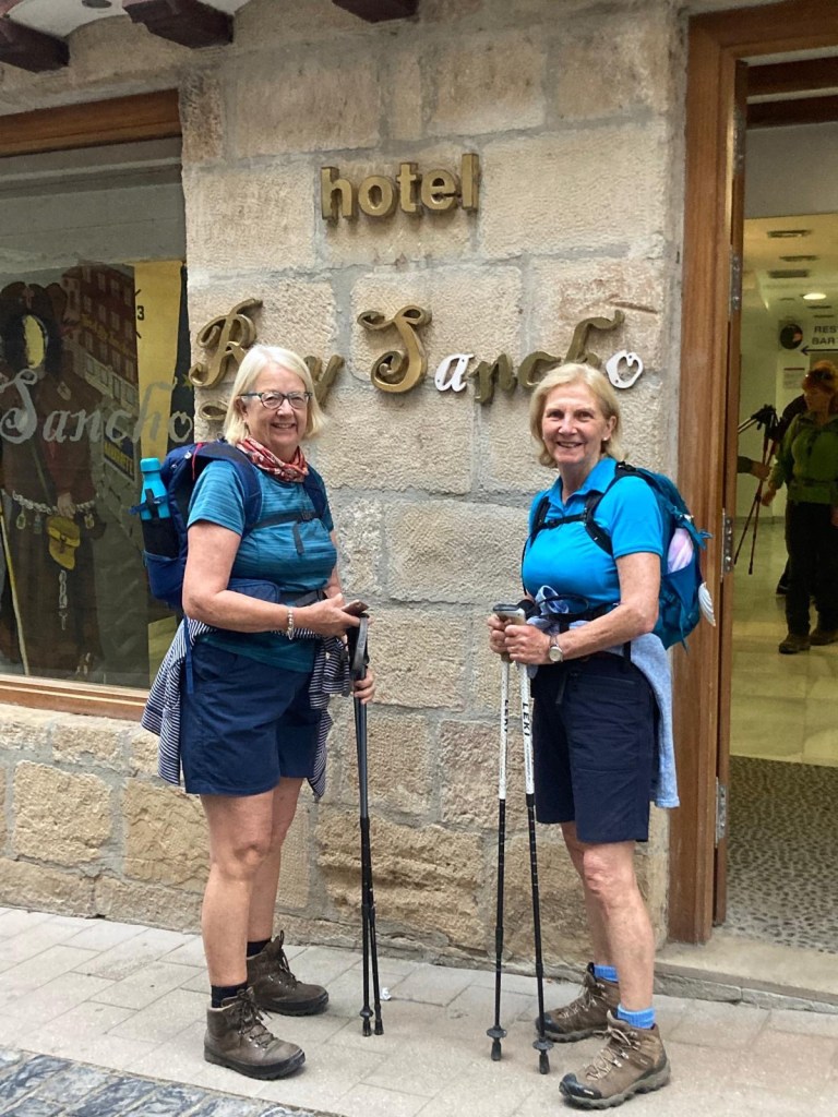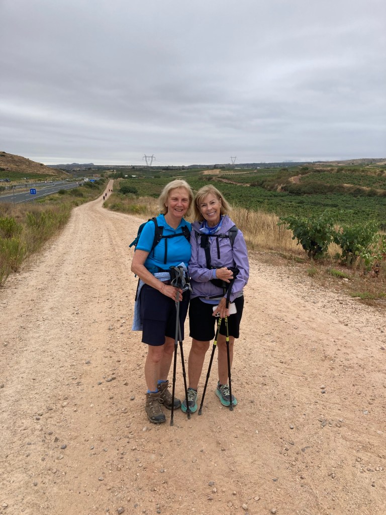 So as we walked further, two girls came up from behind us …and Joanne recognised one, a girl called Amy, from her “ coffee break” stop at Orisson ( first cafe half way up the Pyrenees ) We were introduced as the girls from England …and it transpires that Amy from Chicago, spent a year in Durham on a student exchange in 1985 . Well of course, that is Kathleen’s stomping ground …so they reminisced, and Amy proved she could still speak with a Jordy accent !!!!