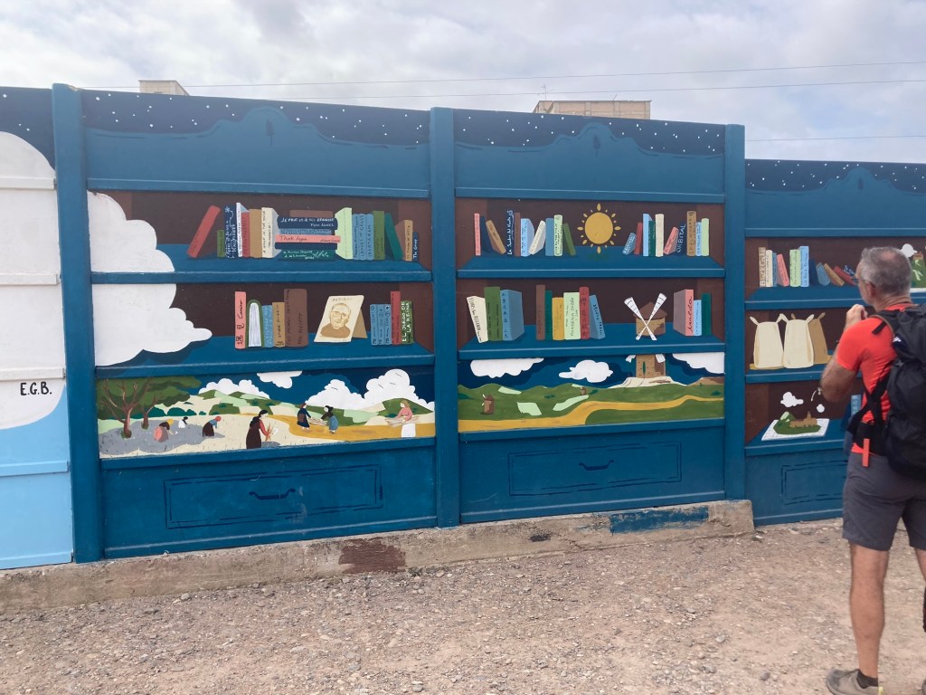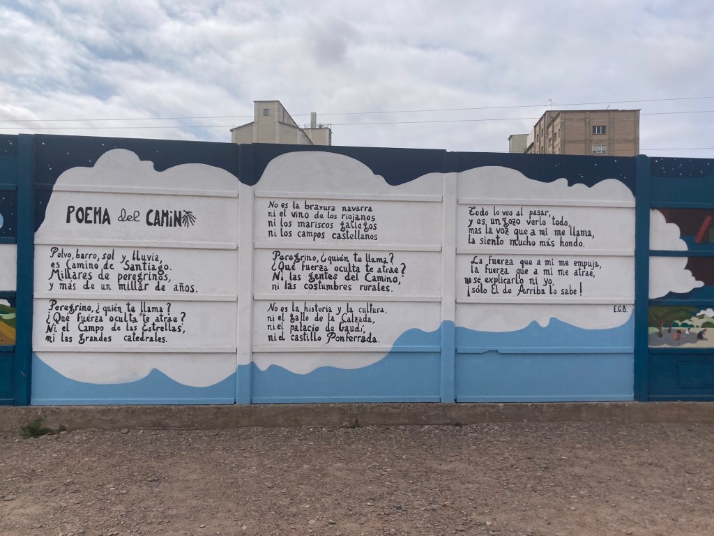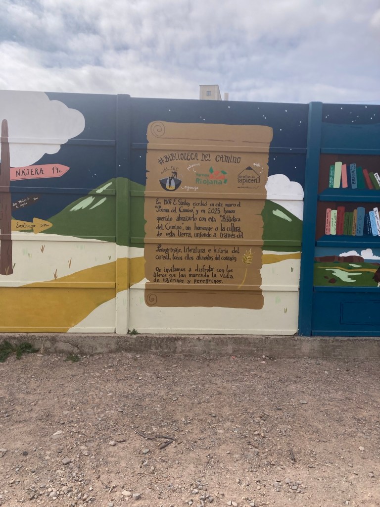 Then we came across the Pilgrim’s Poem ….”Pilgrim who calls you ?” It is basically grafitti on a wall but the local people have made a feature of it , and either side of the poem they have painted a library of books that pilgrims can write on . Sod’s Law we only had a biro ….perhaps normal pilgrims carry, as routine, a felt tip pen about their person for such an occasion 🥴🥴🥴 whoever knew !!!