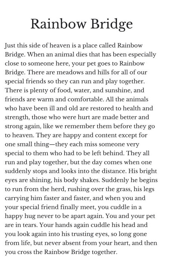 So our beloved Millie Dog …run free and fly high over that Rainbow Bridge …know that you are so loved by us all and so many others ….until we all meet again …