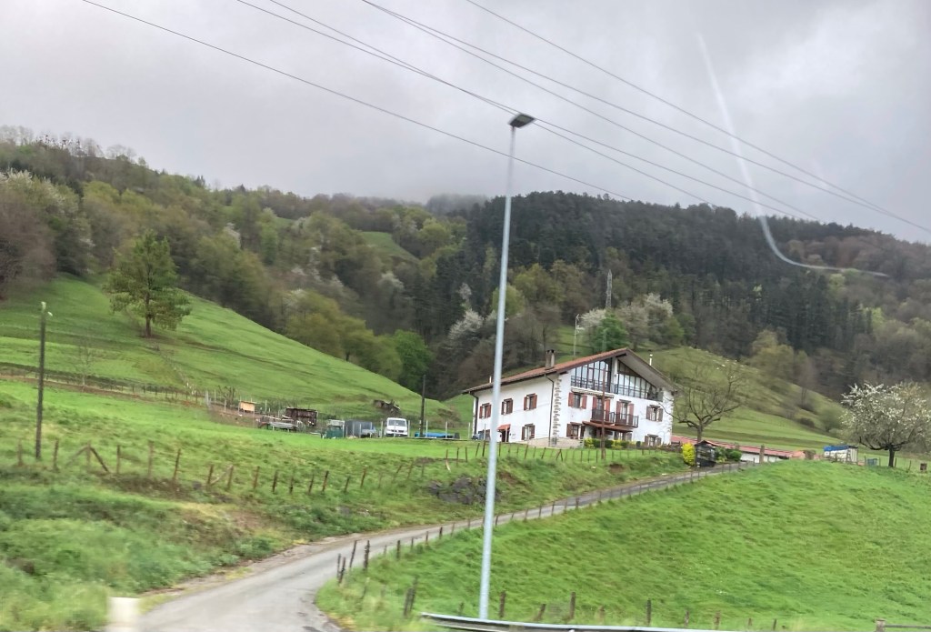 Soon spoilt itself …….You know when you’re entering the Basque Country because the houses change shape….View from our hotel…A bank of wild primroses just past our hotel….Another long haul …but at the end of this journey something far better than pots of gold…And before you ask – banana milkshake with yoghurt and mango milkshake with cream ! Oh and a cafe con lèche of course!