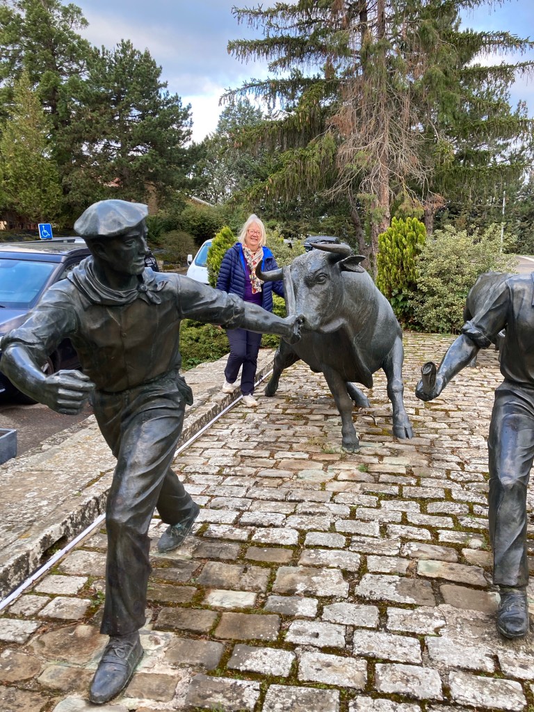 Taking dog friendly to a whole new level….Okay so the bed is a little small but …….The pet friendly El Toro Hotel …simulating the San Fermin festival in July where bulls run through the streets with people dressed in white jeans, tee shirts and red cravates running in front of them . Why you ask …no idea…other than if you are gored, the entry wound will be clearly visible !!!No chance for me though I’ve got my eyes on the one behind….He won’t take any prisoners…….these bulls ( no, not these ones, I mean the ones that run in the streets ) are like Evil Kanevil ( remember him), on steroids!